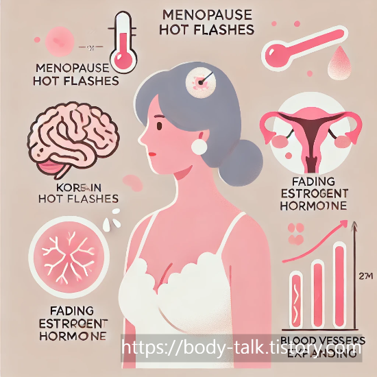 갱년기의 열감과 홍조는 단순한 체질 문제가 아니라 호르몬의 급격한 변화에서 비롯됩니다. 폐경 전후로 에스트로겐 수치가 떨어지면 뇌의 체온을 조절하는 시상하부가 불안정해집니다. 그 결과, 몸은 실제로 체온이 올라가지 않았는데도 ‘더워졌다’고 착각해 혈관을 확장시키고 땀을 분비하게 되는 것입니다.