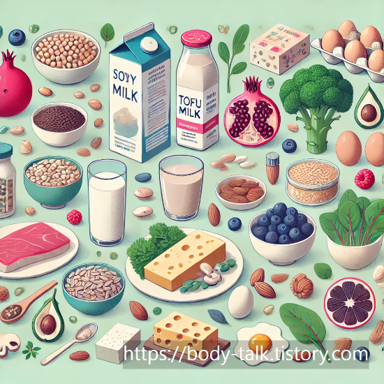갱년기에는 호르몬 감소로 인해 뼈·혈관·신경계가 모두 영향을 받습니다. 따라서 다음과 같은 영양소를 충분히 섭취하는 것이 중요합니다.